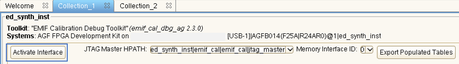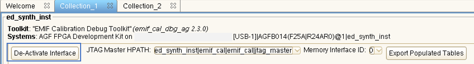 - If there are multiple EMIF instances in the programmed design, select the column (path to JTAG master) and ID of the EMIF instance for which to activate the toolkit.