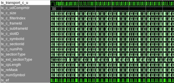 Table 2. Simulation Scripts Simulator File Directory Script ModelSim Altera SE <variation name> oran_testbench/simulation/setup_scripts/mentor run_vsim.do VCS <variation name>oran _testbench/simulation/setup_scripts/synopsys/vcs run_vcs.sh VCSMX <variation name>oran _testbench/simulation/setup_scripts/synopsys/vcsmx run_vcsmx.sh Figure 3. Transmitter Top-Level Simulation