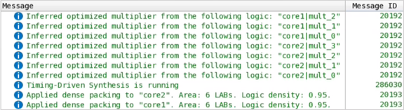 This information indicates the effort the Compiler is packing computational logic into a smaller number of LABs. If the design is already highly utilized, the Compiler can skip this stage.