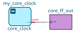 - Destinations: Displays only the fan-out destination nodes fed by the selected port. In the following example image, when you use the Destinations filter for the selected instance port clk, the destination instance port outclk displays: