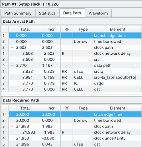 The following shows the setup report for this example in the Timing Analyzer and highlights the launch and latch edges.