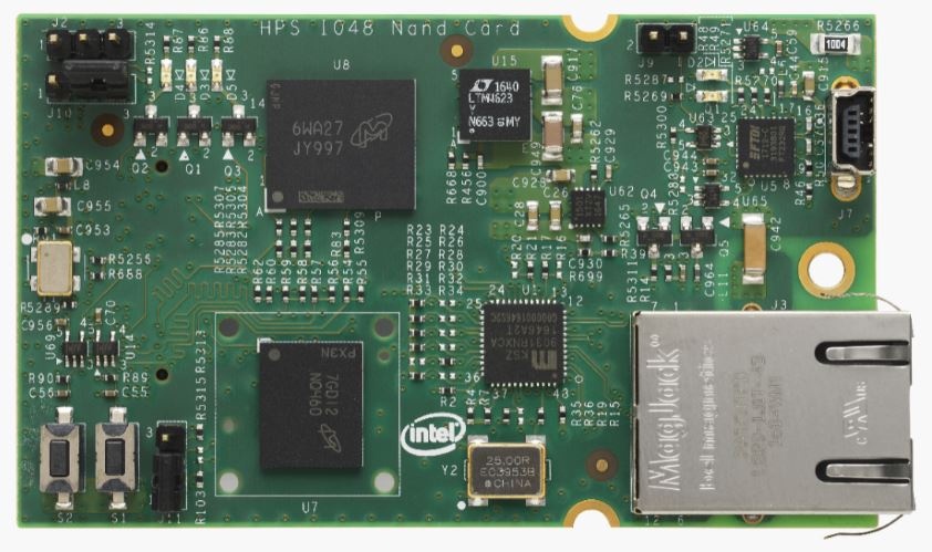 Stratix 10 SoC IO48 bank can be multiplexed to different peripheral interfaces. On NAND daughter card, IO48 bank is interfaced with Ethernet RGMII, UART, I2C, NAND Flash, eMMC and GPIO interfaces.