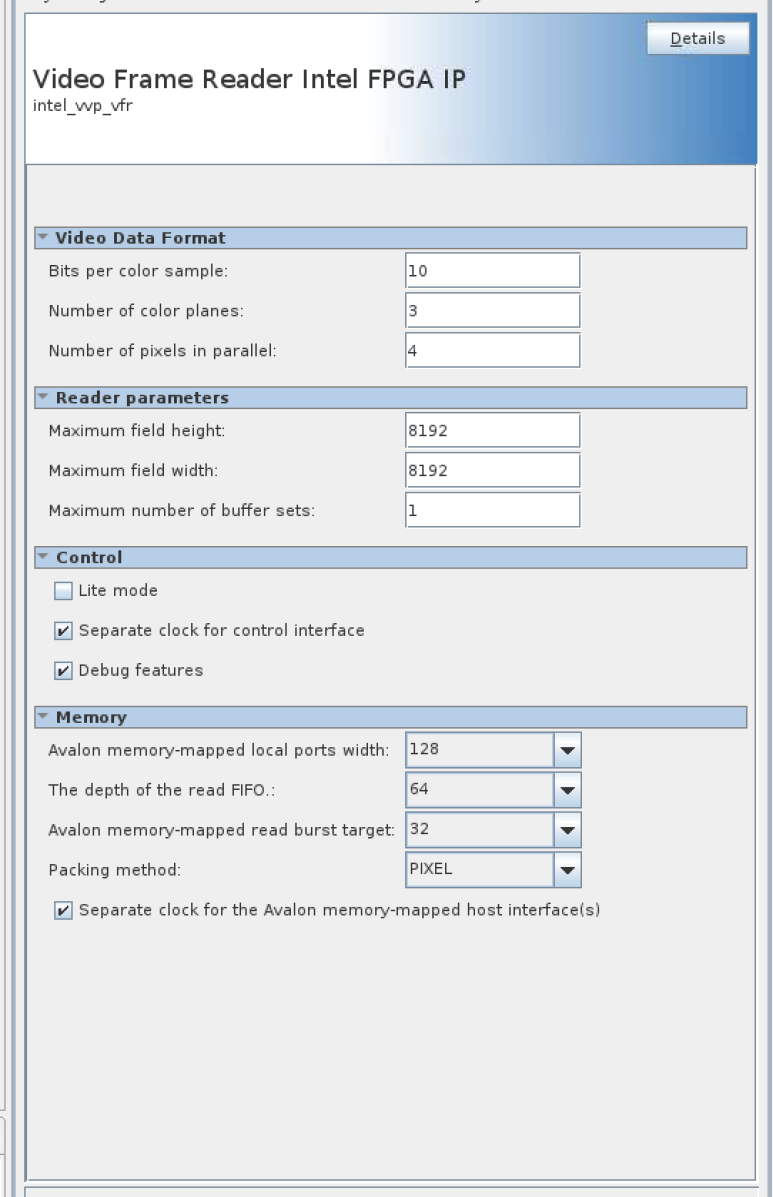 37.2. Video Frame Reader IP Parameters