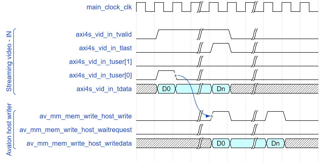 axi4s_vid_in_tuser[0] strobe to indicate start of frame First av_mm_mem_write_host_write strobe of a frame write 44