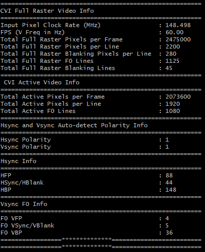 The IP provides a wide variety of video statistic collection, e.g. frame counter, frame per second, active and blanking video frame information. All this information is accessible directly from a processor register interface.