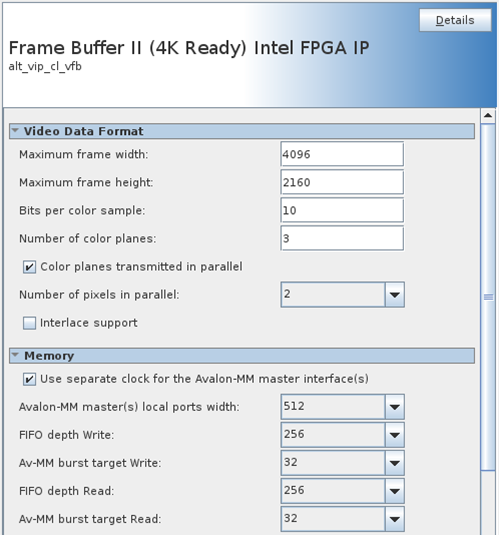 - Configure Frame Buffer to use read and write FIFO depths of 256