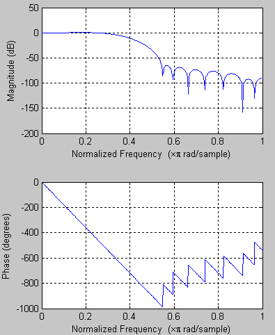 This simple design uses a low-pass filter. In a real design, more careful generation of coefficients may be necessary.