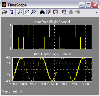 The InterpolatingCIC block implements a highly efficient multichannel cascaded integrator-comb filter across a broad range of parameters directly from a Simulink model. The InterpolatingCIC block performs filtering on a stream of multichannel input data and produces a stream of output data with increased sampling frequency.