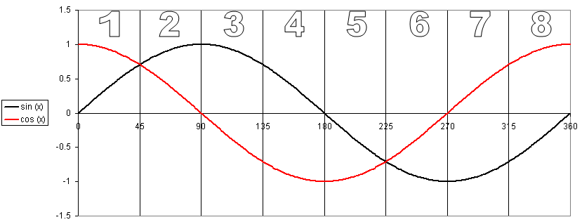 1 | 0 <= x < π/4 | sin(x) | cos(x) |