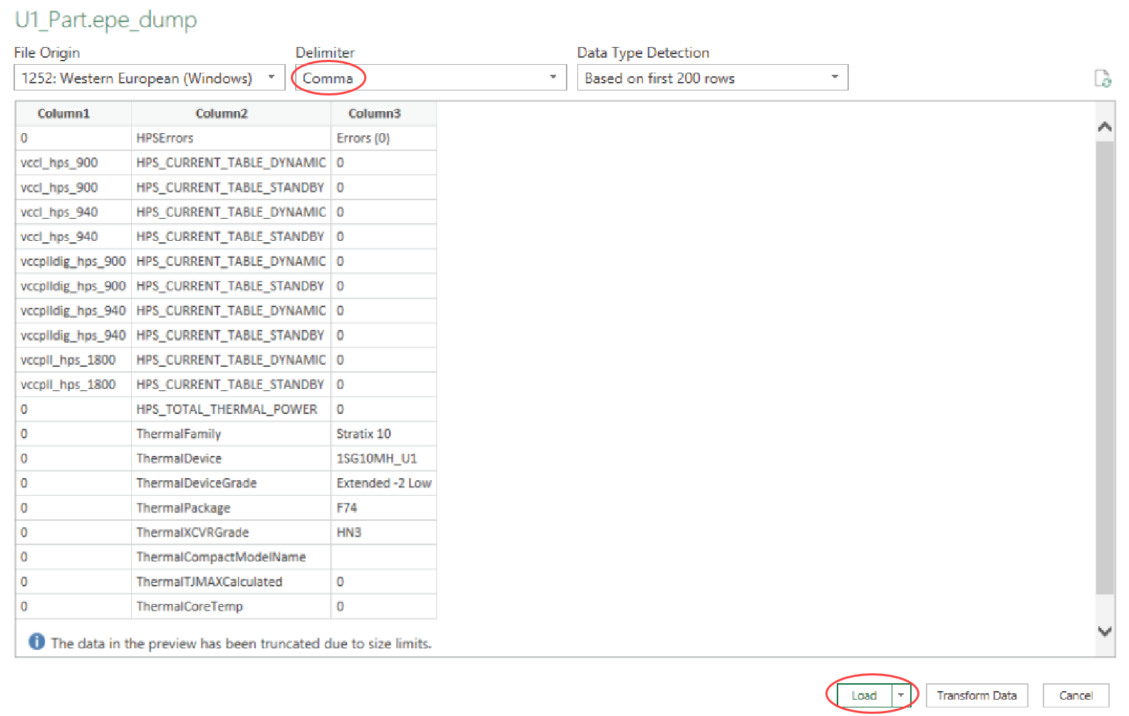 - Ensure that Comma is selected in the Delimiter field, and click Load, as Specifying Comma Delimiters shows.