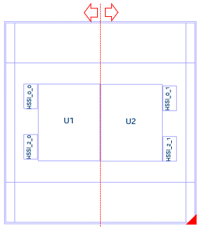 The device package contains two core fabric dies, each with two associated transceivers. In the figure below, U1 and U2 identify the two core fabric tiles, with HSSI_* identifying their respective transceivers.