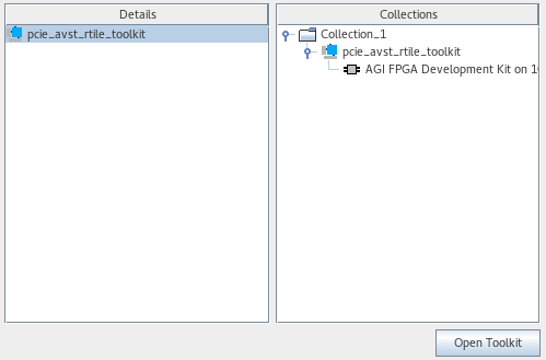 - Select pcie_avst_rtile_toolkit under the Details panel.