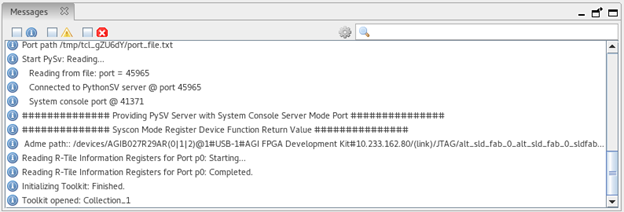 - Once the Debug Toolkit is initialized and loaded, you will see the following message in the Messages window: