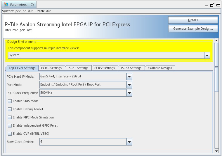 Figure 52. Intel R-Tile  Avalon®  Streaming Top-Level IP Parameter Editor for PCIe Gen5 4x4 Mode