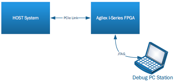 • Debug PC Station: An additional computer system with the Intel® Quartus® Prime Pro Edition software installed which is running the Debug Toolkit and is connected to the Intel Agilex® 7 I-Series FPGA through a JTAG connection.