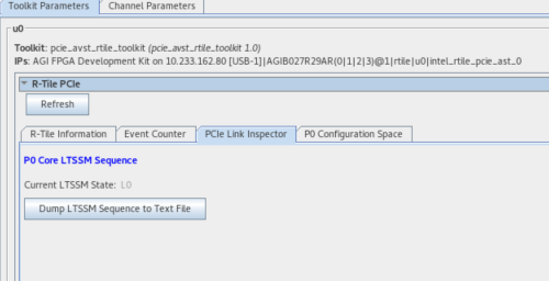 The Link Inspector is found under the PCIe Link Inspector tab after opening the Debug Toolkit.