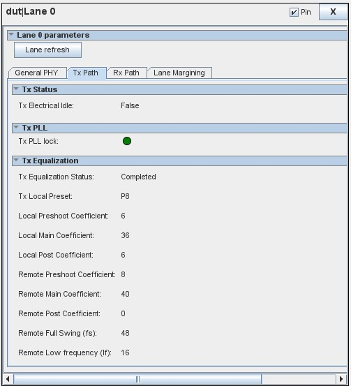 Remote Full Swing (fs) | Depends on the device capability of the link partner. | Indicates the full swing value used by the link partner during the Equalization phase of link training. | |