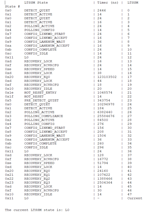 When you want to dump the LTSSM sequence, a single read of the FIFO status of the respective core is performed. Depending on the empty status and how many entries are in the FIFO, successive reads are executed.