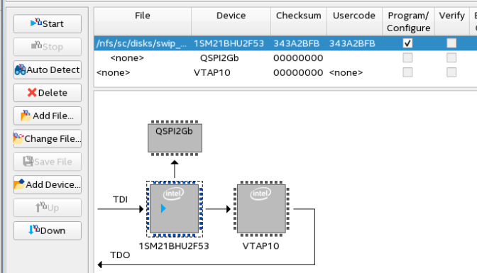 - Select Auto Detect to detect the JTAG device chain