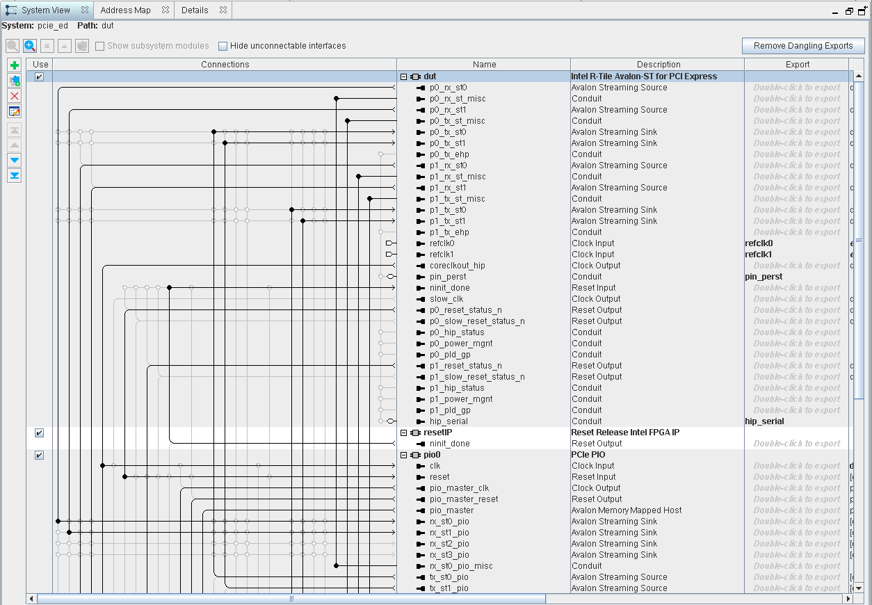 For simulation purposes, this design example also generates a testbench that instantiates the PIO design example and a Root Port BFM to interface with the target Endpoint.
