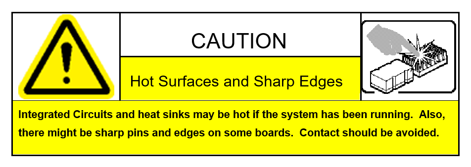 Certain components such as heat sinks, power regulators, and processors may be hot. Heatsink fans are not guarded. Power supply fan may be accessible through guard. Care should be taken to avoid contact with these components.