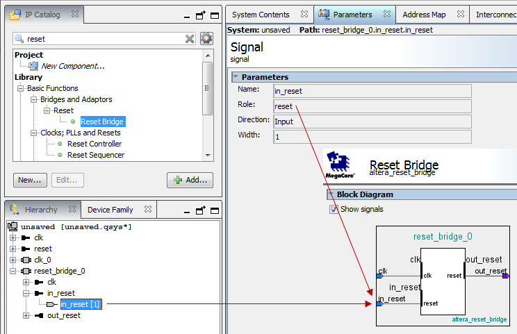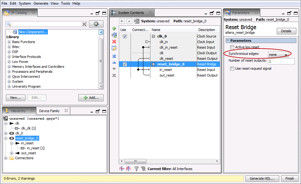 5.9. Reset Polarity and Synchronization in Platform Designer