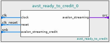 The Avalon® Streaming Ready to Credit Adapter facilitates connectivity between an Avalon® Streaming sink and an Avalon® Streaming Credit source.