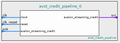 The Avalon® Streaming Credit Pipeline Bridge allows you to insert an arbitrary number of pipeline stages on both the credit and data paths. The number of pipeline stages on the credit path, from sink to source, need not be equal to the number of pipeline stages on the data path, from source to sink.