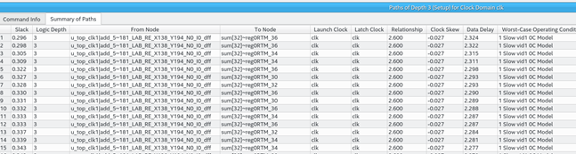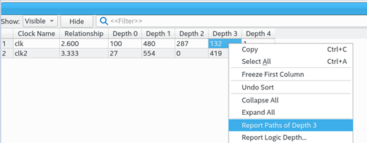 Figure 43. Report Paths of Depth 3Call report logic depth by topology for each clock, intraclock only.