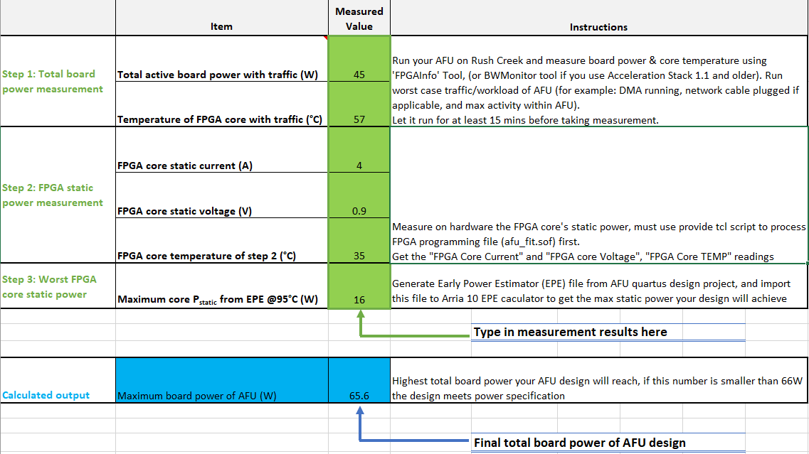 Figure 2. Intel® FPGA PAC Power Estimator Sheet Sample