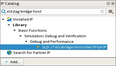- On the IP Catalog (Tools > IP Catalog), type SLD JTAG Bridge Host.