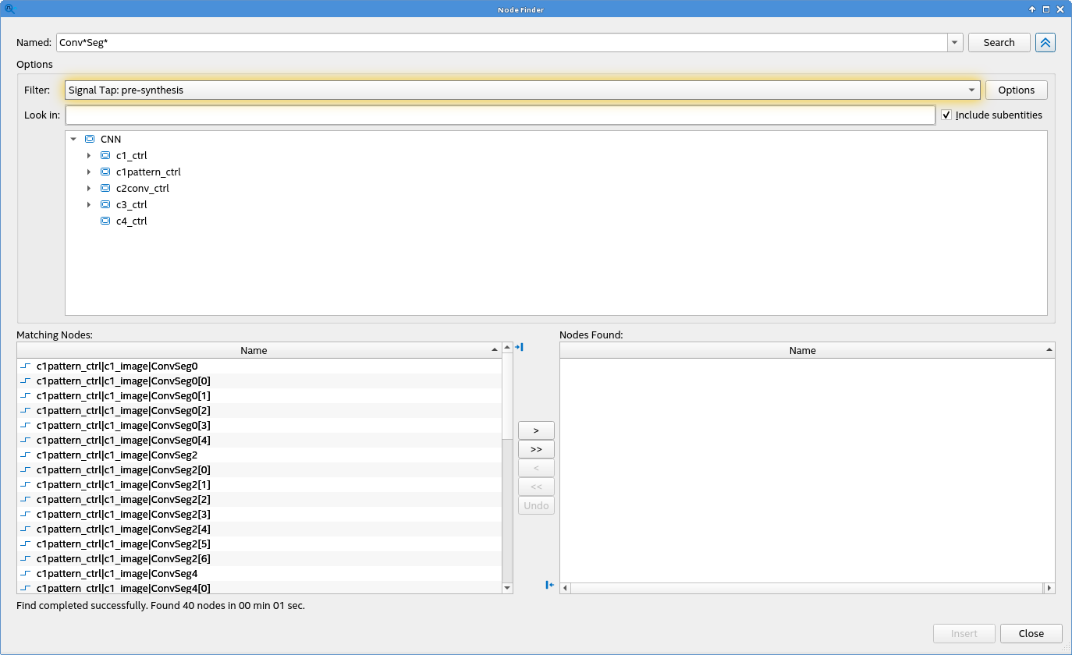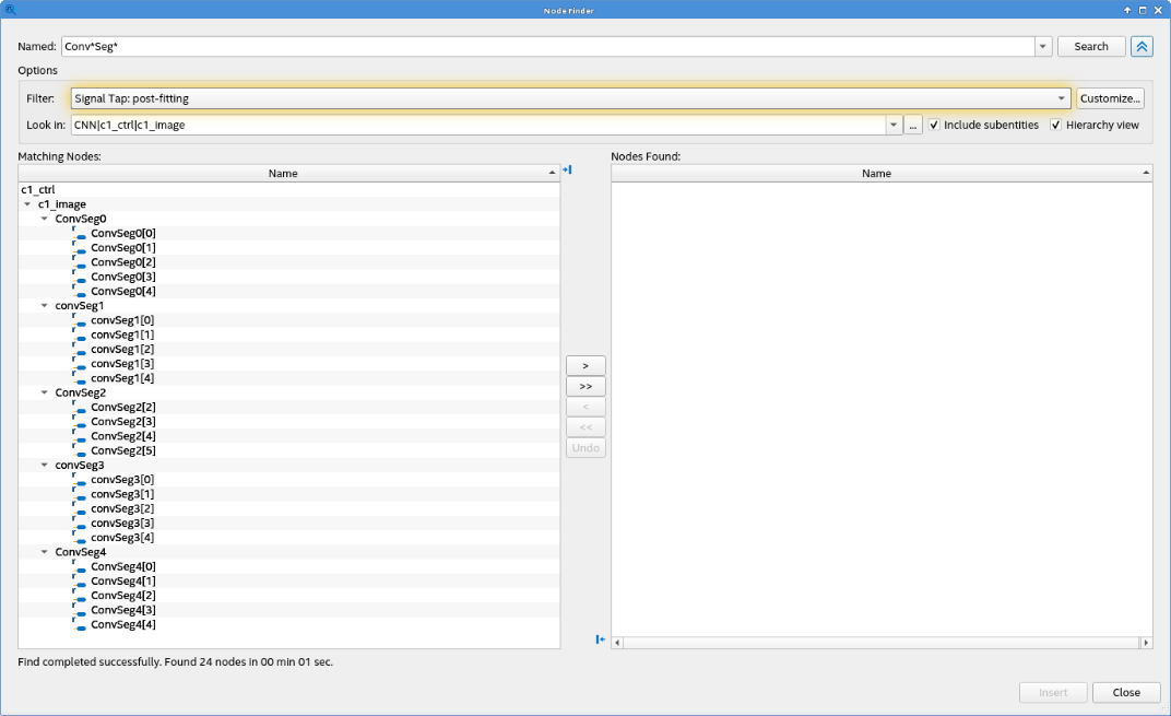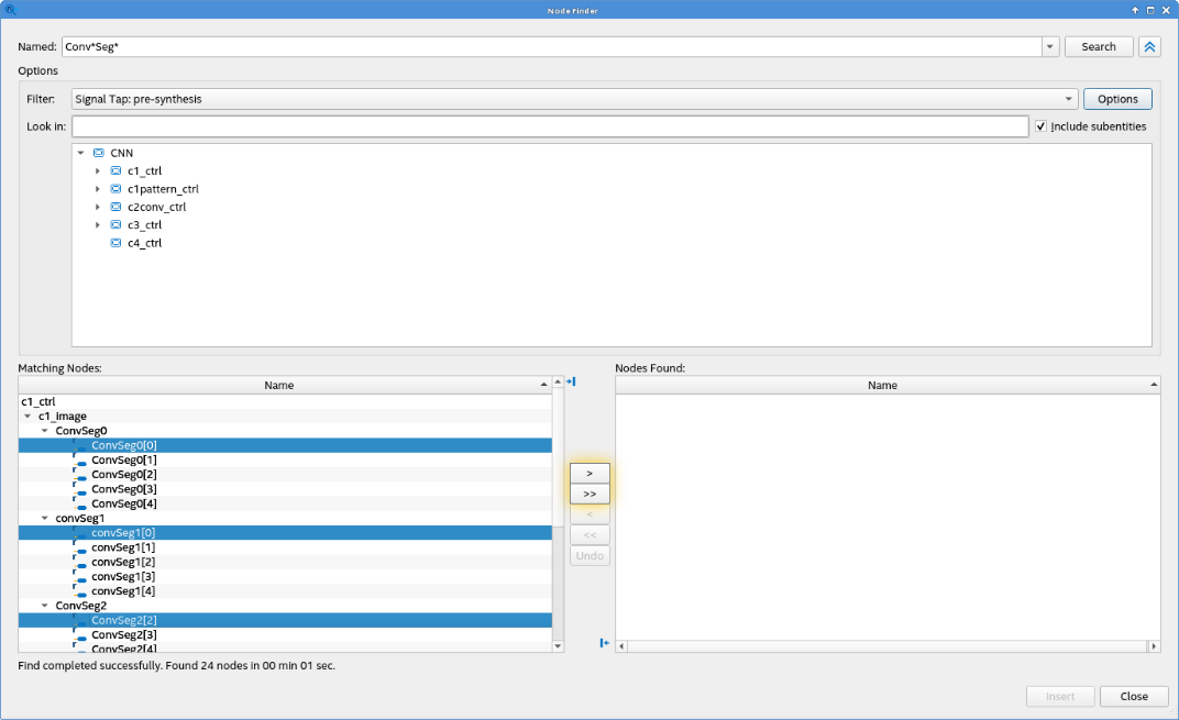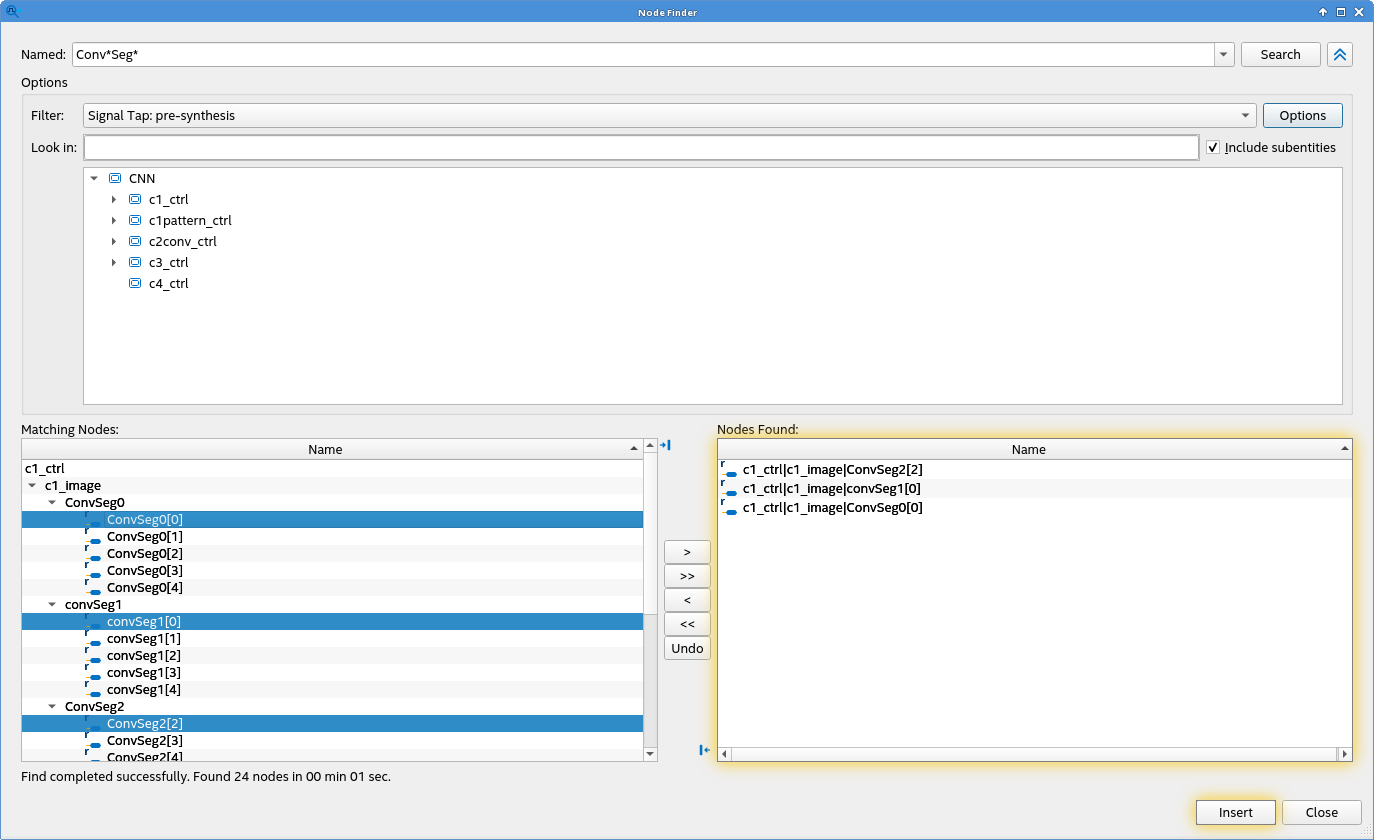 - Click Insert. The nodes are added to the Setup tab signal list in the Signal Tap logic analyzer GUI.