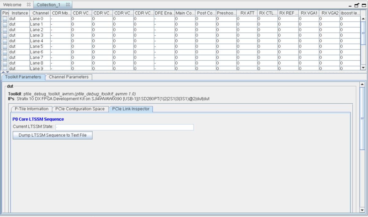 When the Dump LTSSM Sequence to Text File button is initially clicked, a text file (ltssm_sequence_dump_p*.txt) with the LTSSM information is created in the location from where the System Console window is opened. Depending on the PCIe topology, there can be up to four text files. Subsequent LTSSM sequence dumps will append to the respective files.