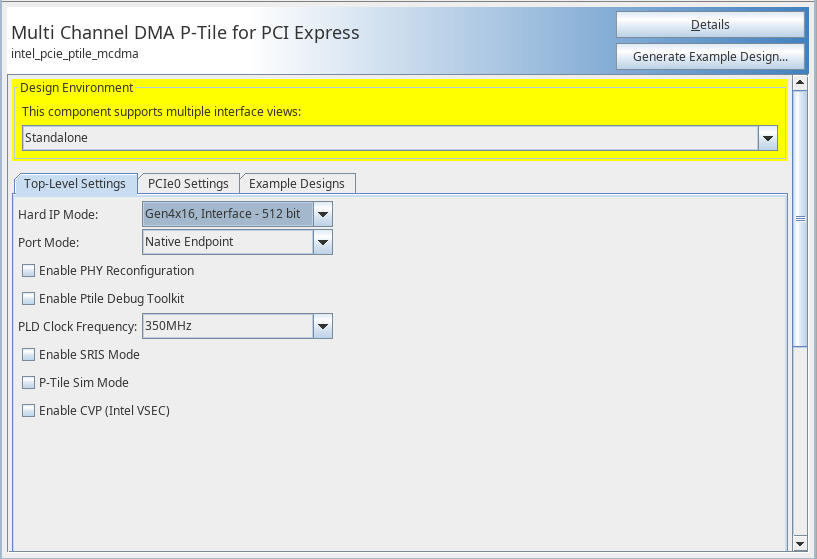 Note: This parameter is present in F-Tile MCDMA IP. However, F-Tile MCDMA Design Examples do not support PIPE mode Simulation.
