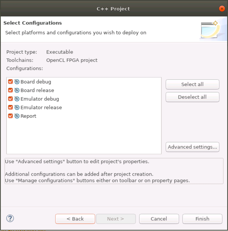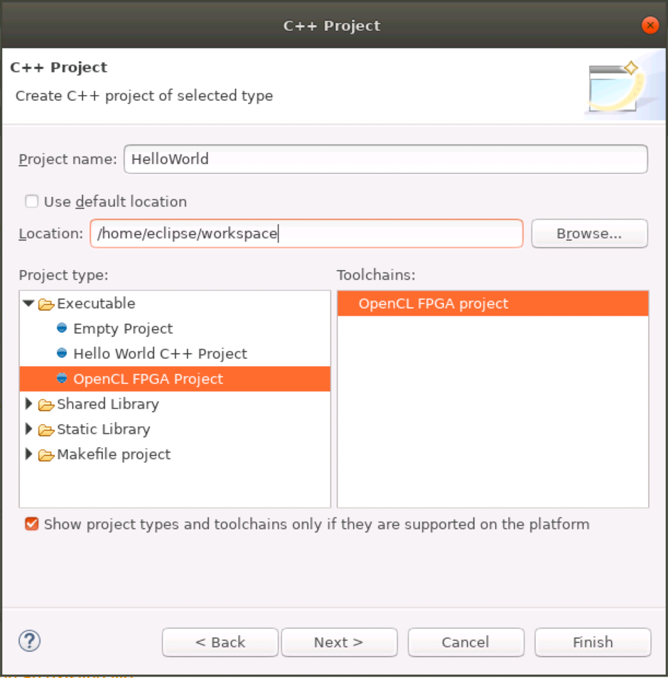 - Under Toolchains, select OpenCL FPGA project.