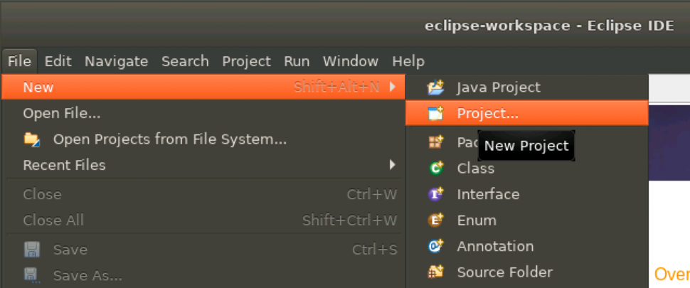- Select File > New > Project menu option.