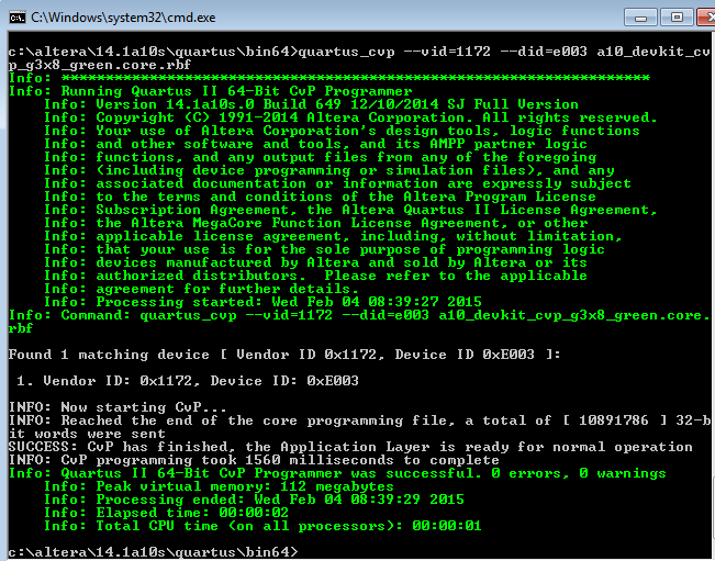 quartus_cvp --vid=<Vendor ID> --did=<Device ID> xxx.core.rbf