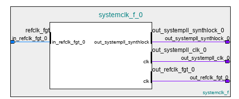 The following figures shows the block symbol and available ports for F-Tile Reference and System PLL Clocks Intel® FPGA IP in this example