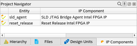 - Verify whether the sld_agent IP variant appears in the IP Components tab of the Project Navigator.