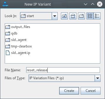 - In the New IP Variant dialog box, type reset_release as the file name, and then click Create.