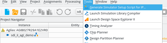 - To generate the simulation setup files, click Tools > Generate Simulator Setup Script for IP....