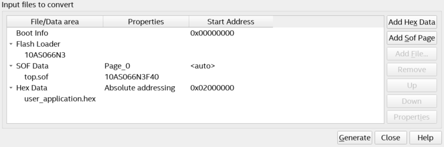 - Add the .sof file to the SOF Data by selecting SOF Data and click Add File.