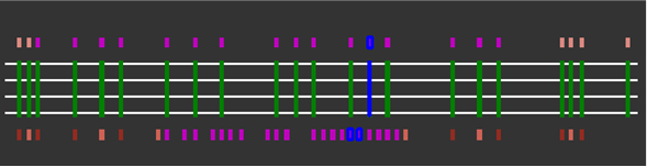 If you click on the NoC switches represented by the green vertical bars, Interface Planner displays the initiators and targets that connect directly to that switch.