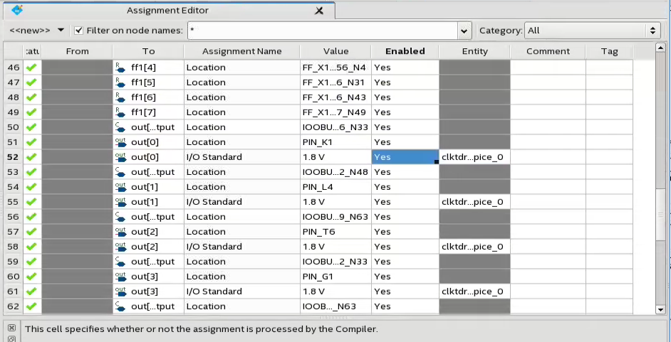You can assign all instance-specific settings and constraints through the Quartus® Prime Assignment Editor. You can filter assignments by node name or category.