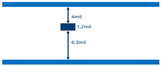 The reference stackup height is selected to be 120 mil to cover maximum signal via coupling (110mil) in simulation while extracting EMIF design guideline. Altera recommends that board designers do not exceed 110mil signal via coupling (stripline routing on inner layers) in the EMIF layout PCB design for DDR4 interfaces.