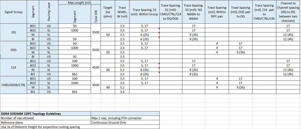 65 mil or HDI or 120mil (Data Routing must be on upper layers to avoid long via/vertical Xtalk) | 65 mil or HDI or 120mil (Data Routing must be on upper layers to avoid long via/vertical Xtalk) | 65mil or HDI or 120mil (Data Routing must be on upper layers to avoid long via/vertical Xtalk) |