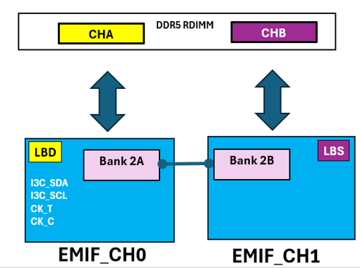 Connect EMIF_CH0 signals to CHA on the RDIMM, and the signals for EMIF_CH1 to CHB on the RDIMM respectively.