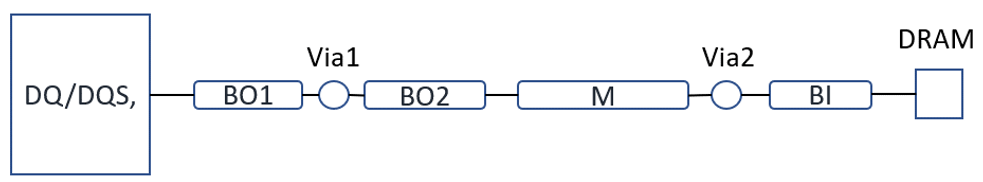 Data Group includes Data Strobe and its complement (DQS and DQS#), Data (DQ), and Data Mask (DM). The connection from the FPGA to DRAM is point-to-point topology as shown in the figure below, for single rank.