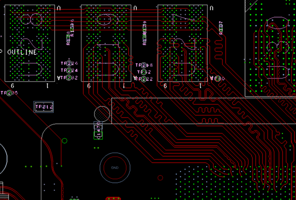 Figure 55. DDR5 32bits+ 8x bits ECC (3 x DRAMs Dual Die) PCB routing on an Altera FPGA Platform Board with thick stackup