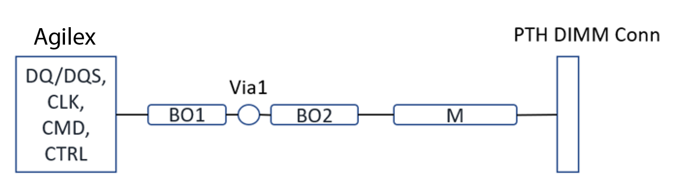 The following figure illustrates the signal connection topology for a PTH type of connector for UDIMM and RDIMM topologies.
